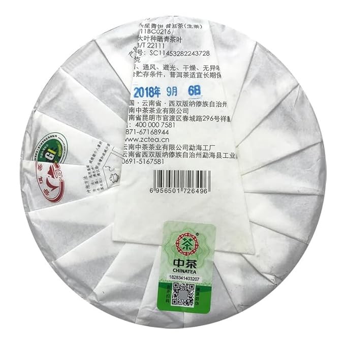 7 pieces, totaling 2500 grams. 2018 Zhongcha Six Star Green Cake Banzhang Raw Tea 357 grams/cake Yunnan Raw Puer Tea Cake Chinese Pu Erh Black Tea Yunnan Pu er Raw Tea
