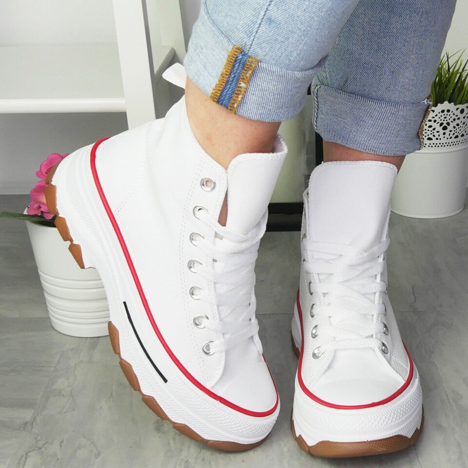 Canvas Womens Trainers Platform Ladies Lace Up Sneakers Comfort Casual Shoes