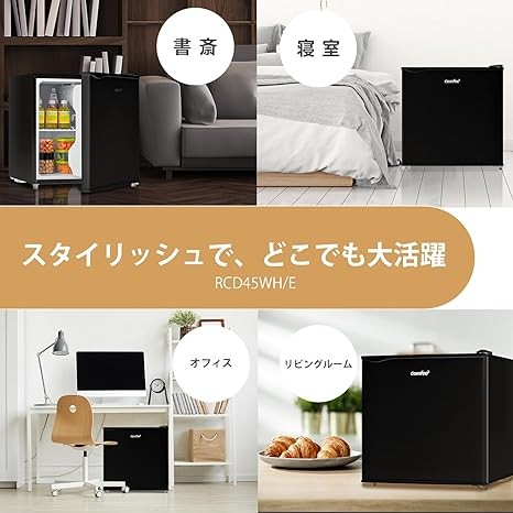 COMFEE' RCD45BL(E) Refrigerator, 1.7 gal (45 L), Right Opening, Black, Compact, Quiet, Energy Saving