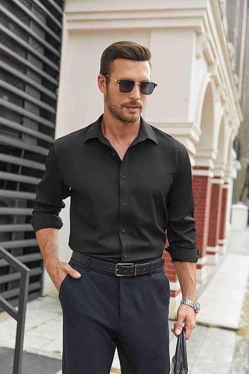 COOFANDY Mens Stretch Dress Shirts Long Sleeve Button Down Shirt Regular Fit Formal Business Shirts