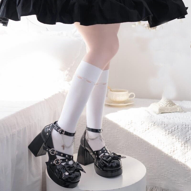 Cute Lolita Girls Sweet Bow High Heels Platform Princess Cosplay Mary Jane Shoes