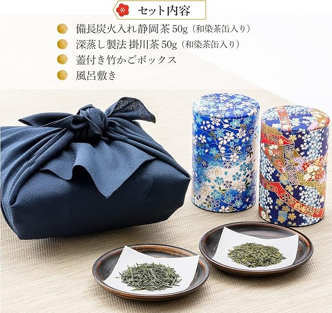 Kawamotoya Chaho, Binchoto-Charcoal-fired Shizuoka Tea, Deep Steamed Processing, Kakegawa Tea, High Quality, 2 Types of Japanese Tea, Gift Tea, Bamboo Basket Included, Gift Wrapping, Kawamotoya Tea