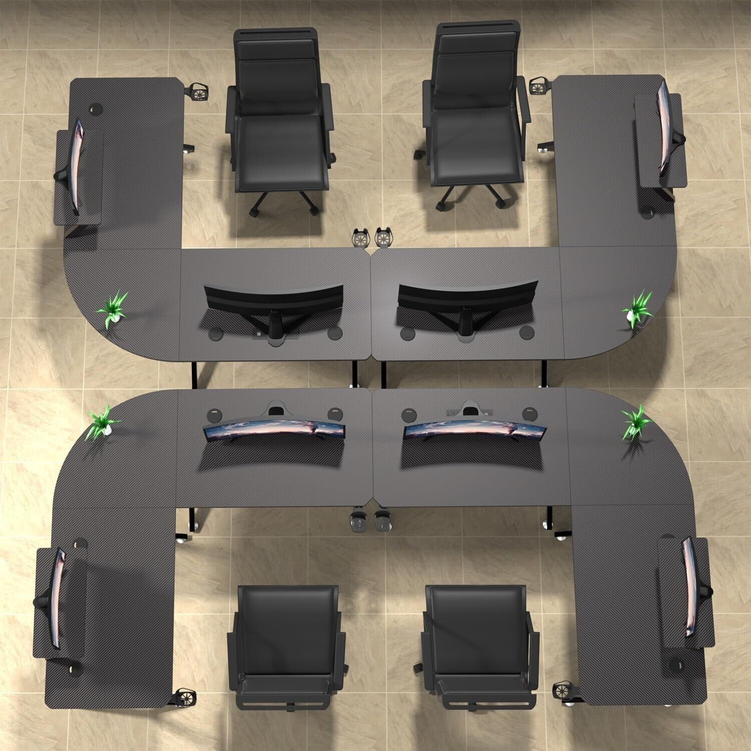 L-Shaped Gaming Desk Corner Table Computer Desk with RGB Light & Power Outlets