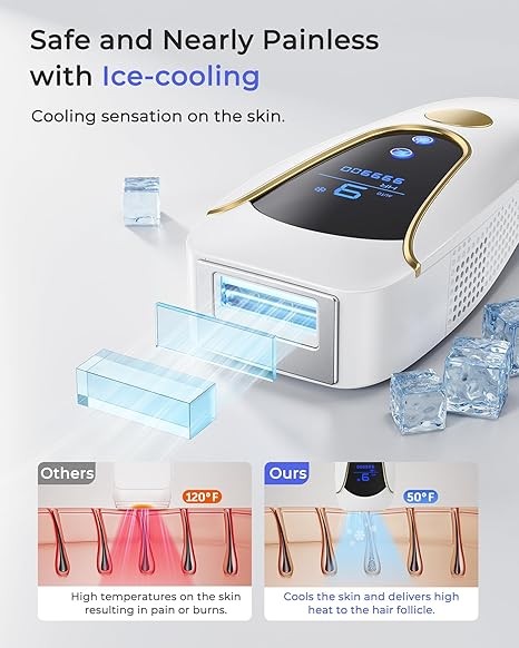 Laser Hair Removal for Women and Men, Air 15 Ice-cooling IPL Device Hair Removal for Nearly Painless & Long-Lasting Results From Home, 3 Modes & Auto Flashing for Fast Full Body Hair Removal