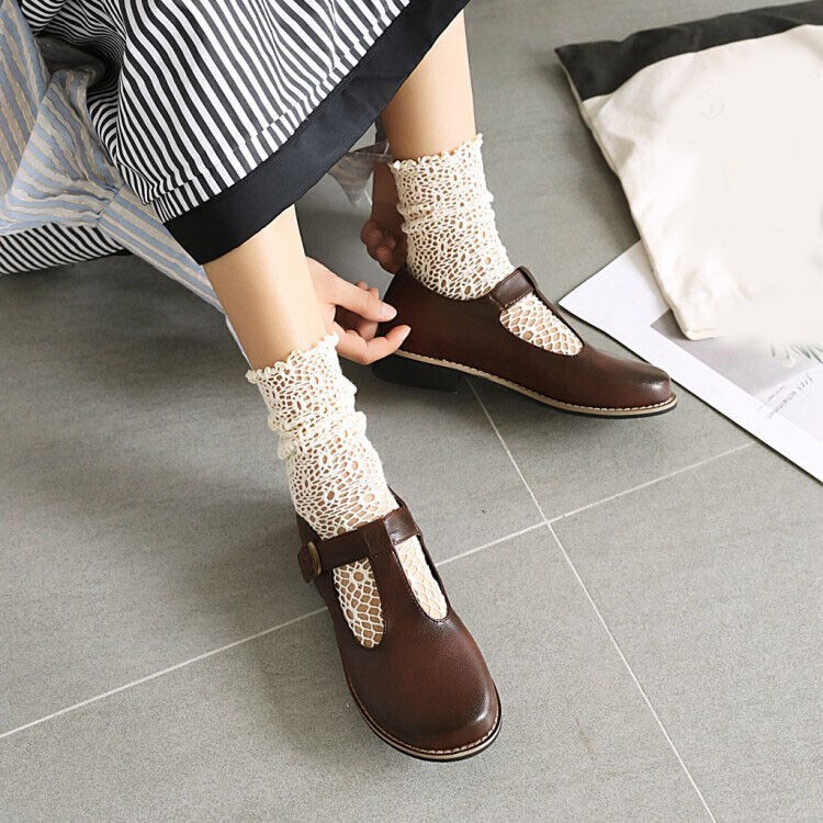 Mary Janes Womens Flats T-Strap College Shoes Brogue Party Pumps Oxfords 34-48
