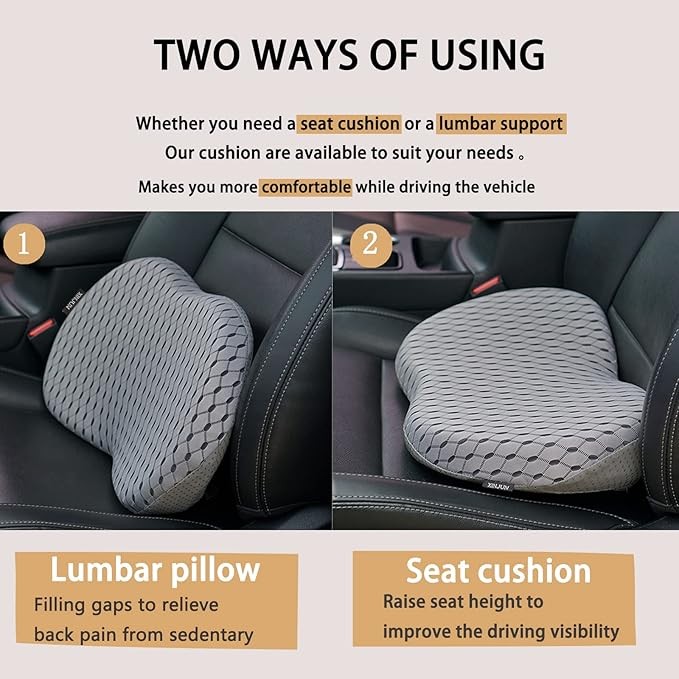 Memory Foam Car Seat Fill Cushion,Lumbar Support Pillow,for Car seat,Office Chair.Car Seat Cushion Pain Relief - for Car Travel, Long Trips(Gray)