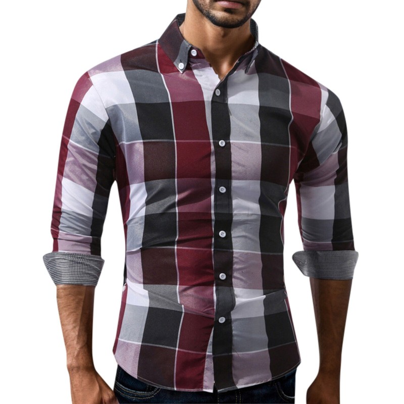 Men's Fashion Long Sleeve Plaid Button Down Shirts Casual Dress Shirt