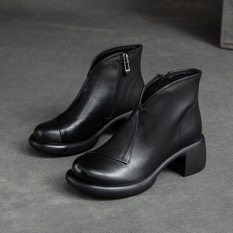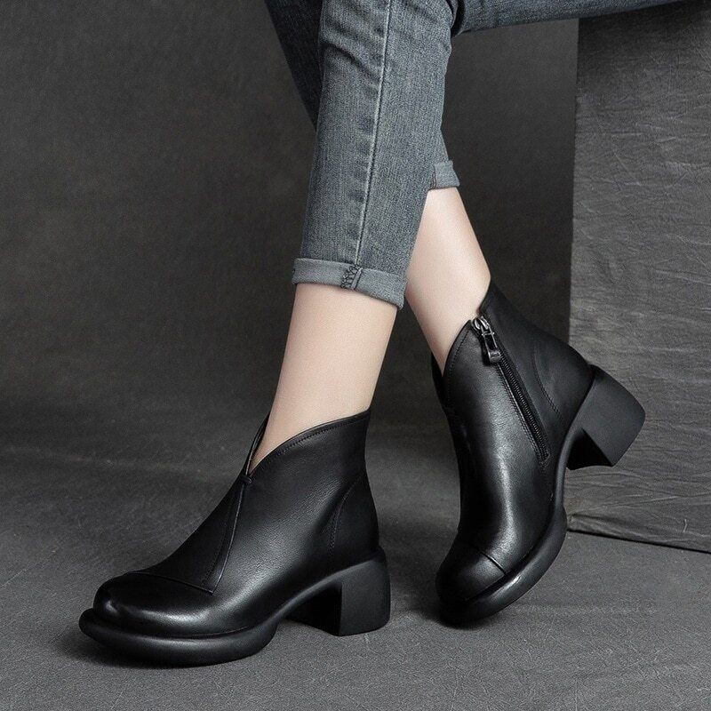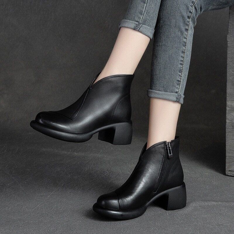 Real Leather Ankle Boots Women Shoes Autumn Winter Heel Zip Leisure Women Boots