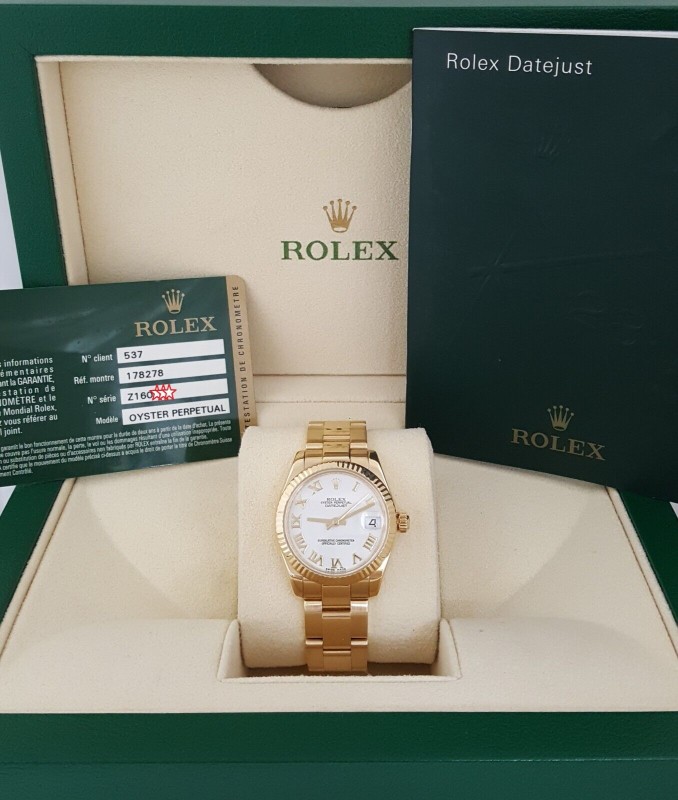 Rolex Lady DateJust President 178278 18K Yellow Gold 31mm White Dial Box & P
