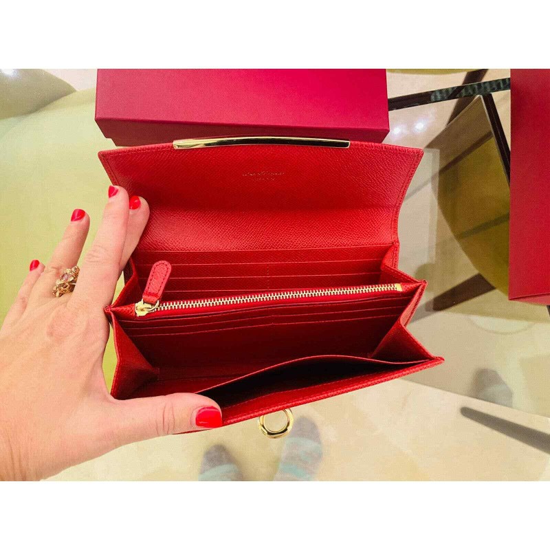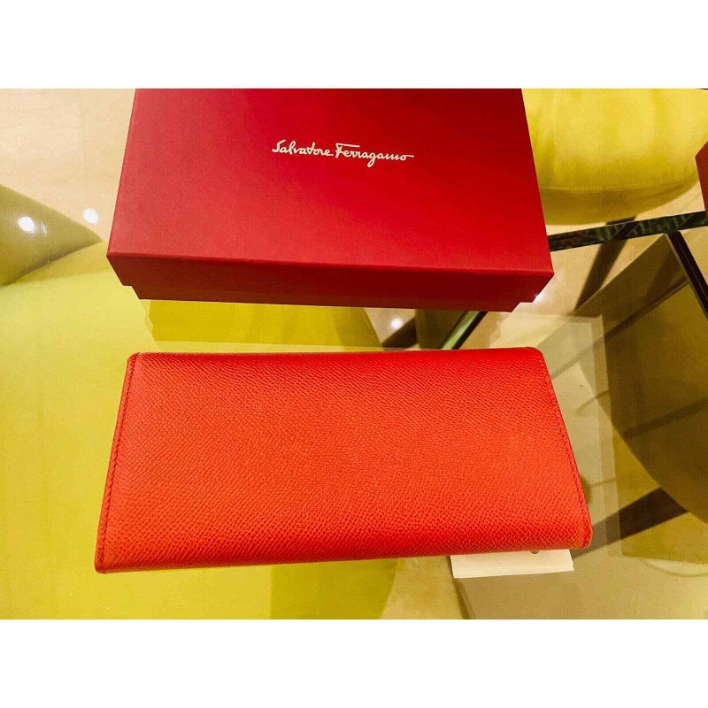 Salvatore Ferragamo Gancini continental wallet RED Gold Leather Clutch Large
