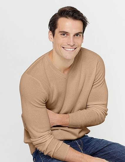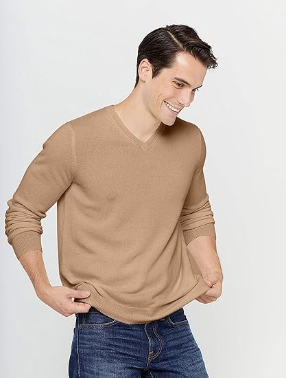 State Cashmere Men's Essential V-Neck Sweater 100% Pure Cashmere Classic Long Sleeve Pullover